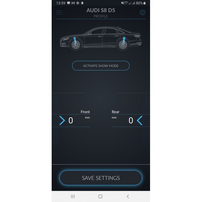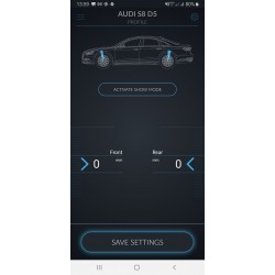 Po zamontowaniu fabryczna regulacja z kabiny kierowcy ( poprzez menu, komputer pokładowy, MMI itp ) działa nadal, tylko w innym zmienionym zakresie zgodnie z zapisanymi ustawieniami modułu. Z kolei przycisk - funkcja Raise / Lift działa w niezmienionym zakresie i pozwala na maksymalne tymczasowe podniesienie auta. Moduł jest obsługiwany za pomocą, na bieżąco aktualizowanej, aplikacji dostępnej dla urządzeń Android oraz iOS Apple ( telefon, tablet, itp. )